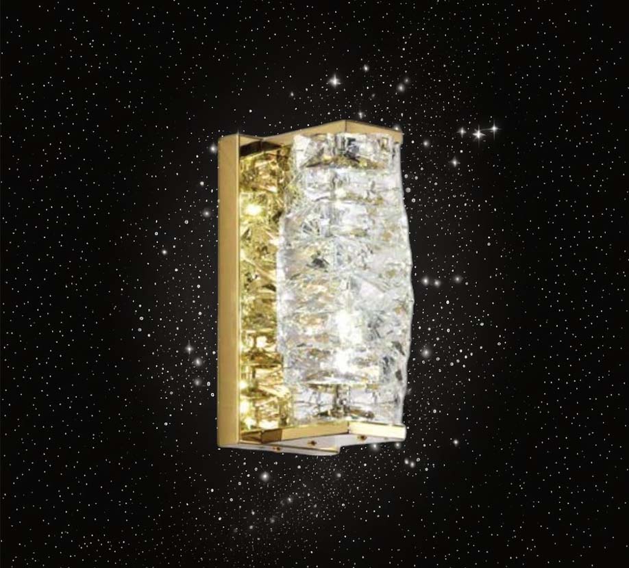 燈體以精緻的工藝打造,水晶折射出的迷人光彩在牆面上流動,宛如夜空中的星光點點,為空間增添一份靜謐與高雅。