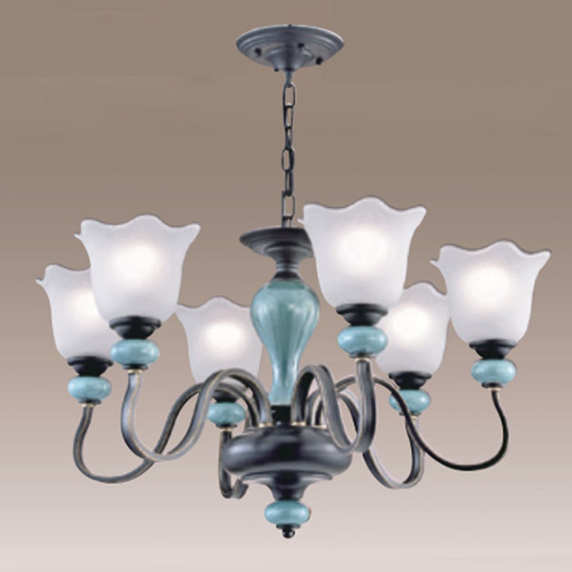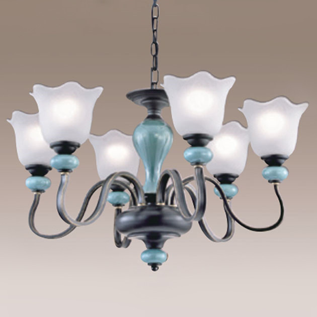 材質:鋼材烤漆手工描金 陶瓷 玻璃客廳吊燈