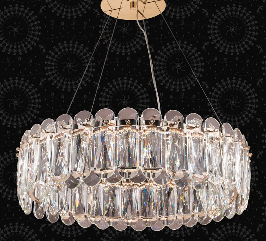 在光線的交織下,綻放出無盡的美麗光芒。一個結合了傳統和現代風格的藝術品,融合了精緻的設計和高品質的水晶材料。