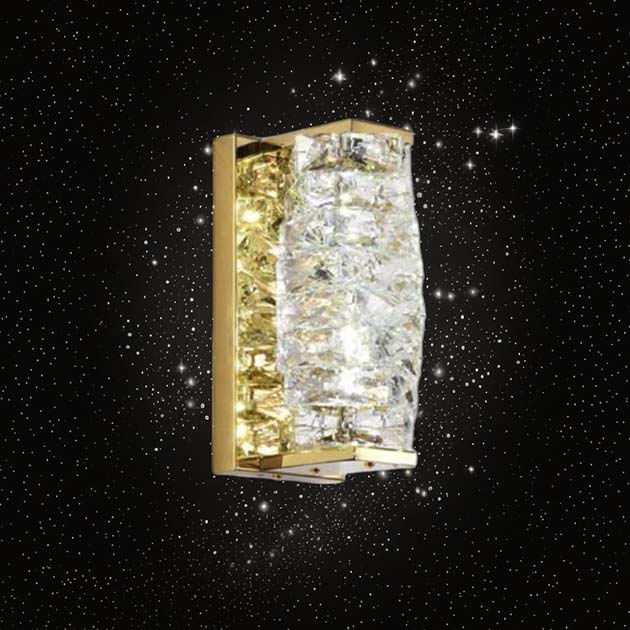 燈體以精緻的工藝打造,水晶折射出的迷人光彩在牆面上流動,宛如夜空中的星光點點,為空間增添一份靜謐與高雅。
