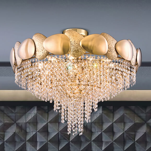 沉穩內斂的進口水晶,搭配不鏽鋼電鍍燈體,時尚與獨特雙重風格兼具,完美地詮釋出不同以往燈具設計,一盞品味出眾的吸頂燈。
